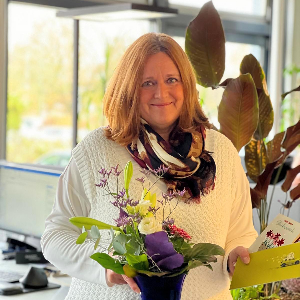 Die charmante, weibliche Stimme, wenn User im ZEUS-Support ☎️📞 anrufen… – das ist unsere Annette. 🤩 Heute wurde sie im Office mit Blümchen & Co. 💐 überrascht, denn wir feiern ihr 15jähriges Dienst-Jubiläum. 👩‍💻